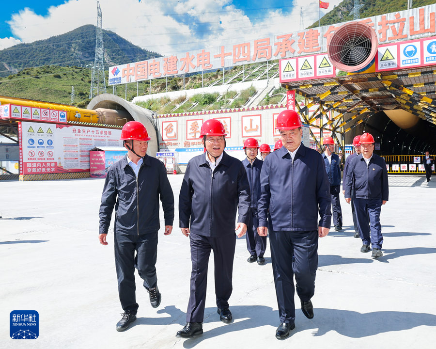 在林芝,李強(qiáng)首先來到川藏鐵路色季拉山隧道出口,察看隧道現(xiàn)場施工情況,了解建設(shè)進(jìn)展,與施工人員交流,對施工團(tuán)隊(duì)克服復(fù)雜地質(zhì)氣候條件艱苦作業(yè)、持續(xù)攻克工程建設(shè)難題予以高度贊許。他指出,川藏鐵路建成通車對于促進(jìn)西藏發(fā)展和民生改善意義重大。要始終把質(zhì)量和安全擺在第一位,堅(jiān)持科學(xué)有序施工,抓好全程質(zhì)量管控,確保工程經(jīng)得起歷史檢驗(yàn)。要加緊推進(jìn)電力、通信等配套設(shè)施建設(shè),做好后勤服務(wù)保障,為工程順利實(shí)施創(chuàng)造良好條件。在米林水電站壩址和雅尼濕地,李強(qiáng)察看施工裝備、鉆孔巖芯等,聽取雅魯藏布江下游水電工程開發(fā)、科技攻關(guān)、移民安置等工作匯報(bào),詳細(xì)了解濕地生態(tài)環(huán)境保護(hù)情況。他強(qiáng)調(diào),雅下水電工程體量大、周期長、影響遠(yuǎn),堪稱世紀(jì)工程。要積極應(yīng)用先進(jìn)技術(shù)、裝備、工藝、材料等,為高質(zhì)量建設(shè)提供有力支撐,并引領(lǐng)相關(guān)領(lǐng)域科技創(chuàng)新和產(chǎn)業(yè)創(chuàng)新。要格外重視生態(tài)保護(hù),確保生態(tài)環(huán)境不受損害。要細(xì)致做好移民搬遷安置工作,把推進(jìn)工程建設(shè)和促進(jìn)當(dāng)?shù)厝罕娋蜆I(yè)增收更好結(jié)合起來。要以高度的使命感和對歷史負(fù)責(zé)、對人民負(fù)責(zé)的精神,把雅下水電工程建成新時(shí)代的重大標(biāo)志性工程。
