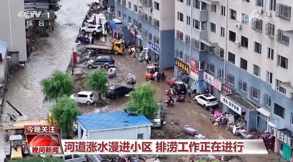 河道漲水漫進小區(qū) 排澇工作正在進行