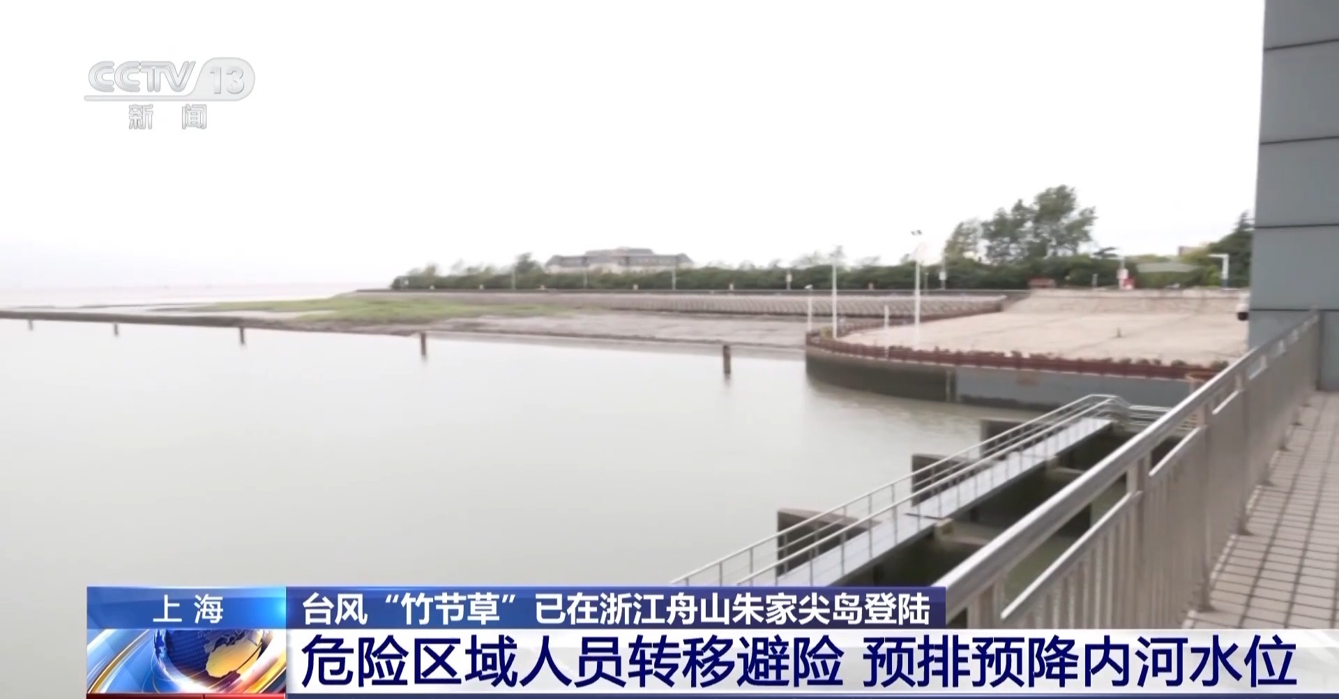 總臺記者 張寄予:為應(yīng)對臺風(fēng)“竹節(jié)草”,上海市奉賢區(qū)金匯港南閘會進(jìn)行開閘排水工作。這里一邊是內(nèi)河,一邊是杭州灣,當(dāng)海水落潮的時候,海水水平面低于內(nèi)河水平面時,就會開啟閘口,利用水位落差自然排水。