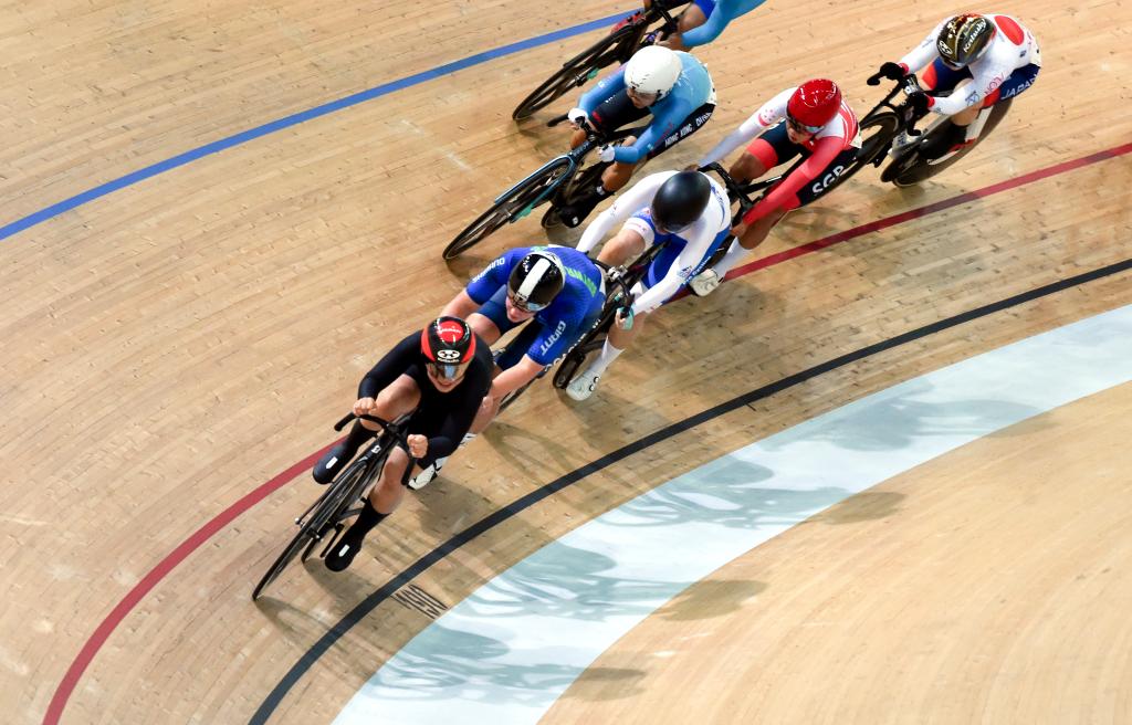 4月19日,2025香港國(guó)際場(chǎng)地杯暨第十五屆全運(yùn)會(huì)場(chǎng)地自行車測(cè)試賽在香港將軍澳自行車館開(kāi)賽。新華社發(fā)(盧炳輝攝)