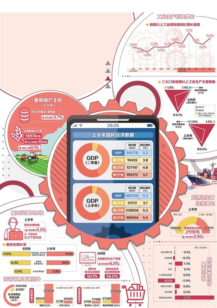 2025年上半年,中國經(jīng)濟頂壓克難,在復雜“路況”中穩(wěn)定前行,高質(zhì)量發(fā)展向新向好,展現(xiàn)出強大韌性和活力。