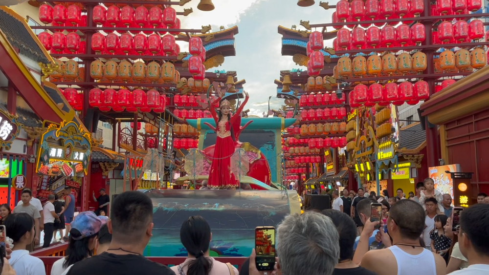 在烏魯木齊市的天山明月城特色街區(qū),這里匯集了餐飲、休閑娛樂、歌舞演藝等業(yè)態(tài),每天都有各類演出活動(dòng),在豐富市民游客文化活動(dòng)的同時(shí),激發(fā)消費(fèi)活力,助力“夜經(jīng)濟(jì)”發(fā)展。