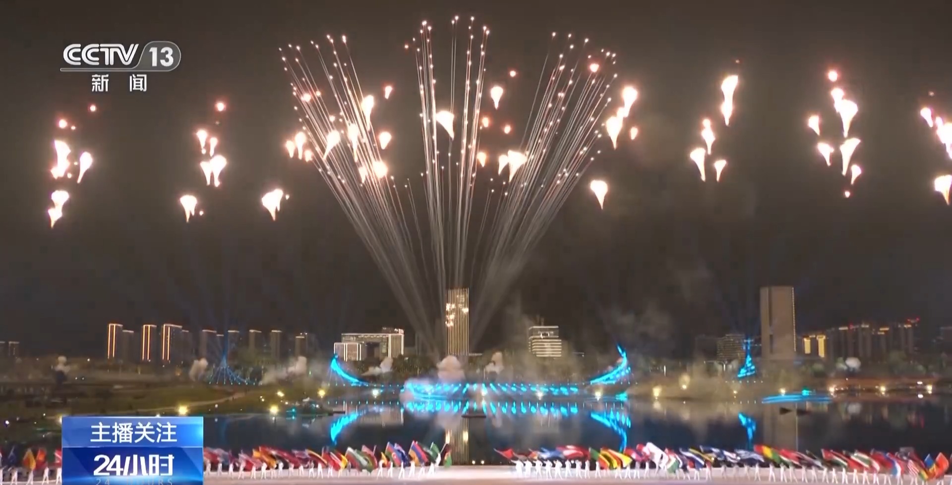 開幕式煙花秀“火中生水” 用焰火打造海浪造型