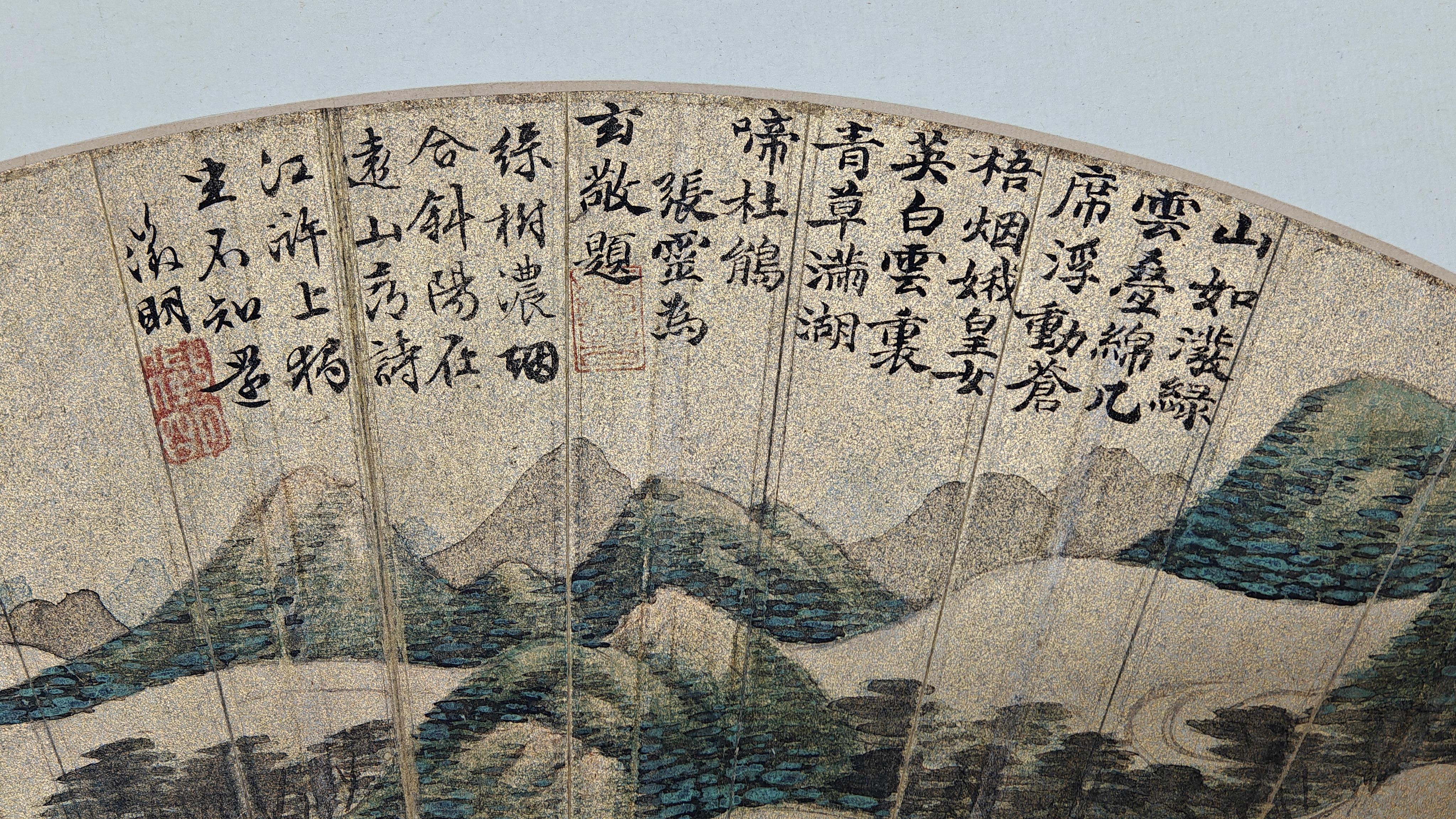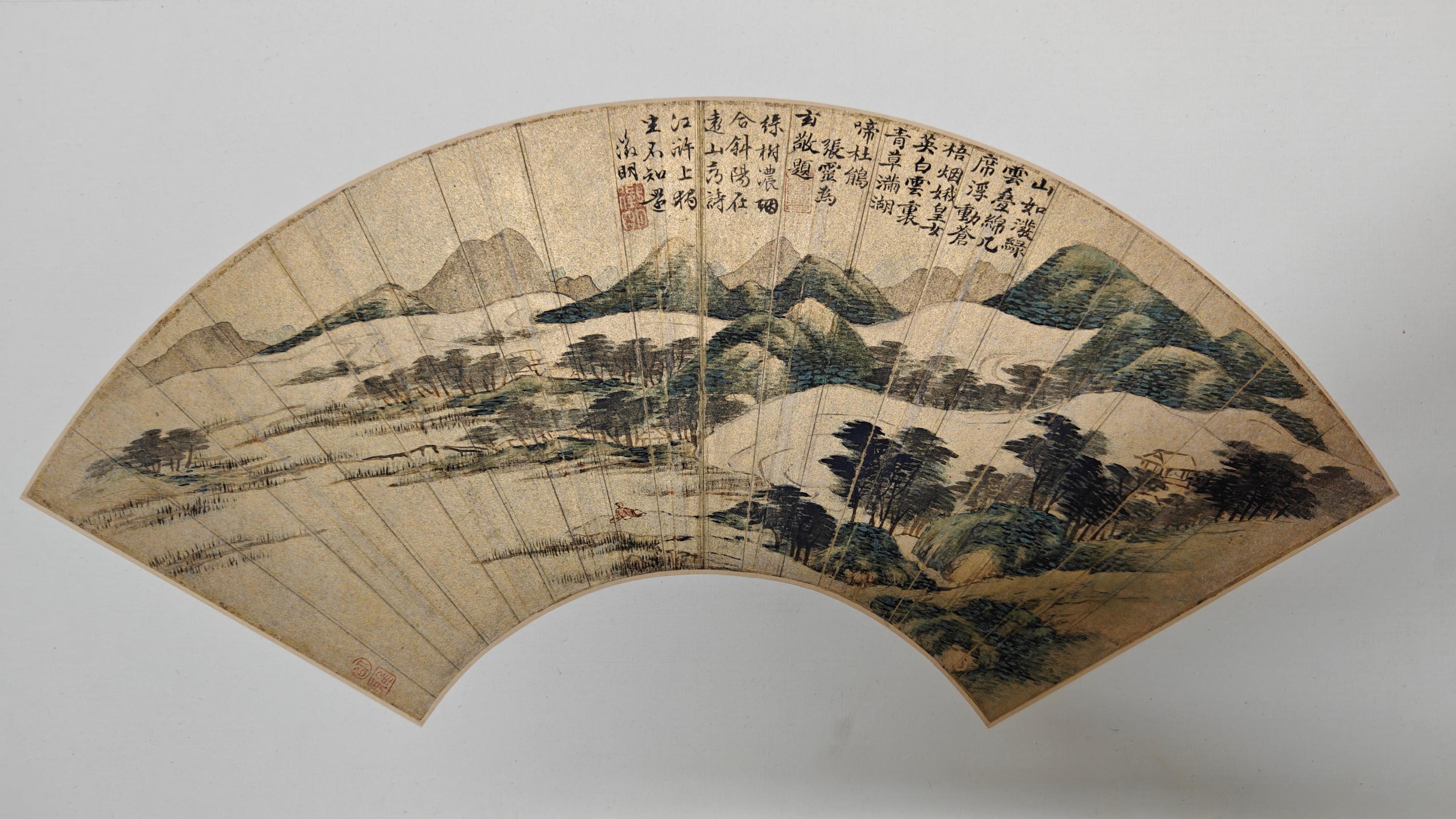 △清御題惲壽平畫冊詩意竹骨扇,天津博物館藏。