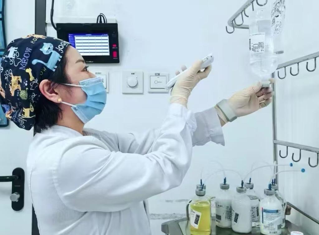 北京大學腫瘤醫(yī)院臨床試驗病區(qū),值班護士正在核對藥物。(受訪者供圖)