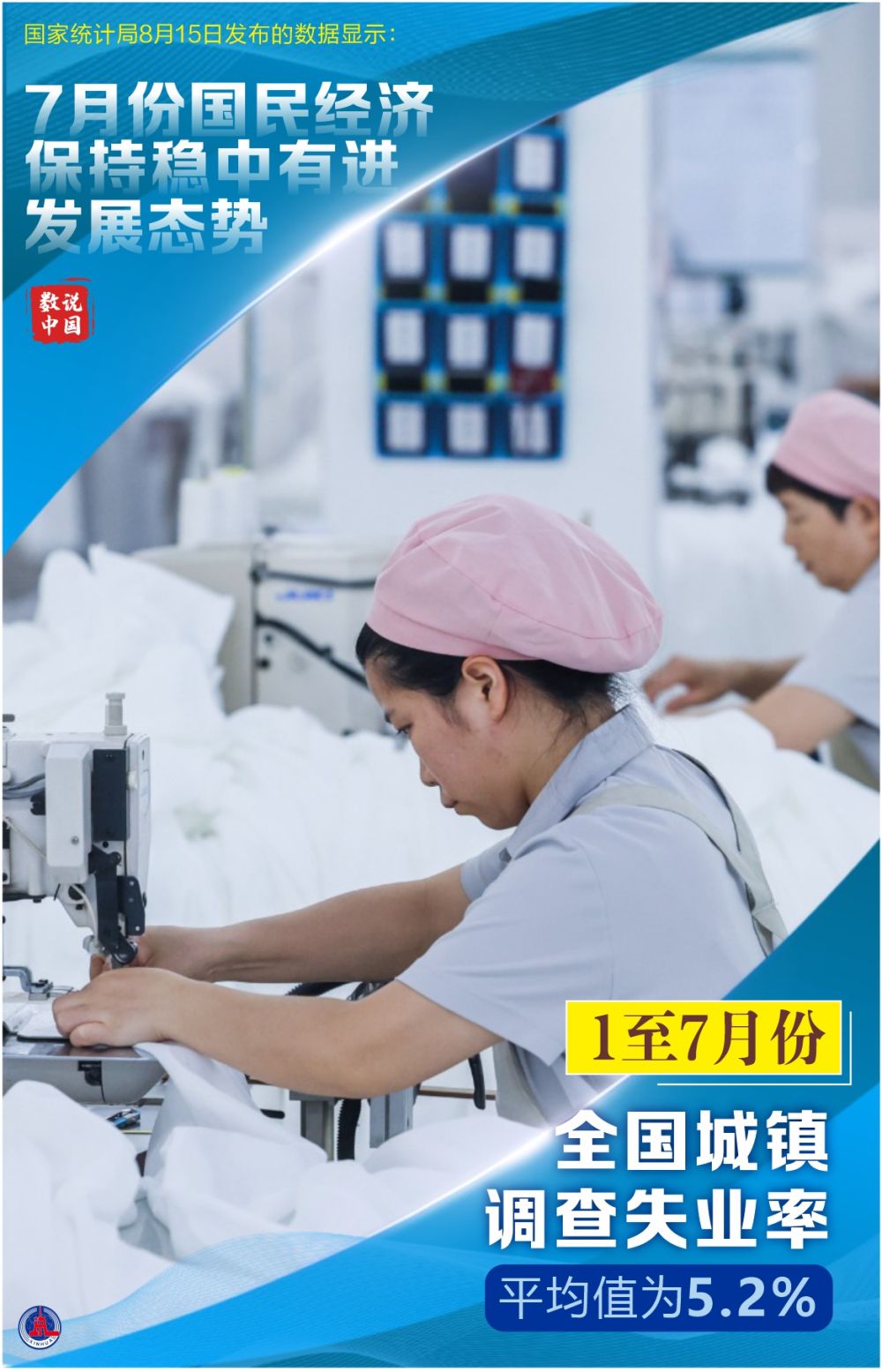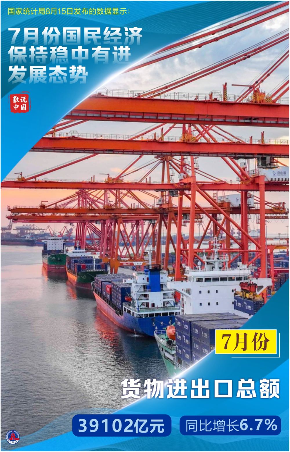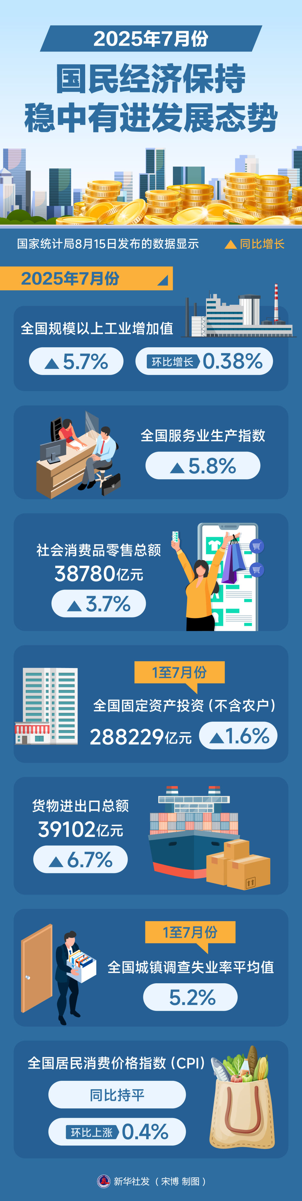 國家統(tǒng)計局8月15日發(fā)布的數(shù)據(jù)顯示,2025年7月份,國民經(jīng)濟保持穩(wěn)中有進發(fā)展態(tài)勢,生產(chǎn)需求持續(xù)增長,就業(yè)物價總體穩(wěn)定,新質(zhì)生產(chǎn)力培育壯大,高質(zhì)量發(fā)展取得新成效。