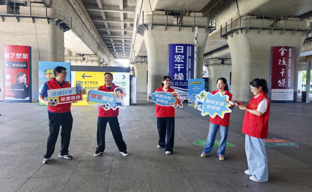 志愿者在火車(chē)站熱情迎接球迷的到來(lái)。中國(guó)經(jīng)濟(jì)網(wǎng)宋雅靜/攝
