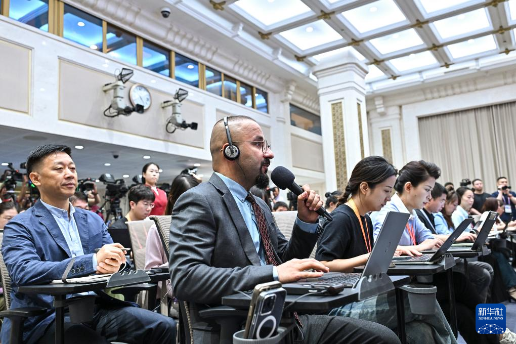 8月20日,國(guó)務(wù)院新聞辦公室在北京舉行新聞發(fā)布會(huì),閱兵領(lǐng)導(dǎo)小組辦公室副主任、中央軍委聯(lián)合參謀部作戰(zhàn)局少將副局長(zhǎng)吳澤棵,中國(guó)人民解放軍中部戰(zhàn)區(qū)閱兵指揮機(jī)構(gòu)辦公室常務(wù)副主任、政治工作部少將副主任徐貴忠介紹閱兵準(zhǔn)備工作有關(guān)情況,并答記者問(wèn)。這是記者在現(xiàn)場(chǎng)提問(wèn)。新華社記者 李鑫 攝