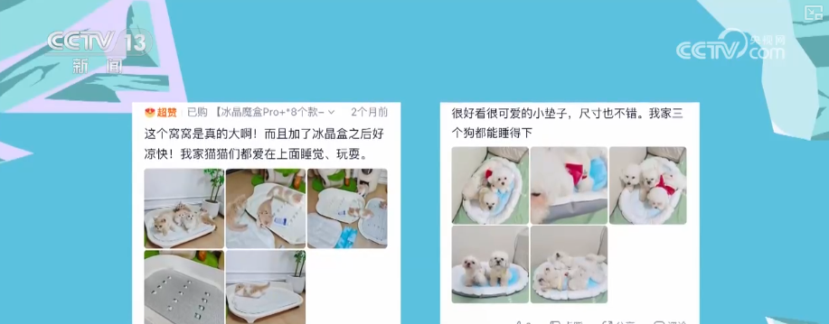 高溫還催熱了“它經(jīng)濟(jì)”。在網(wǎng)購平臺上搜索關(guān)鍵詞“寵物降溫”,寵物空調(diào)房、冰墊、冰絲圍巾、寵物專用空調(diào)等商品琳瑯滿目。一件30塊錢左右的基礎(chǔ)款寵物冰墊,月銷量輕松破萬。可調(diào)節(jié)風(fēng)速的寵物風(fēng)扇、能自動(dòng)制冷的寵物窩等,同樣備受追捧。評論區(qū)的畫風(fēng)是這樣的“狗狗非常喜歡,玩得不亦樂乎”“貓咪睡覺終于踏實(shí)了”“家里的娃和毛孩子都很喜歡”。