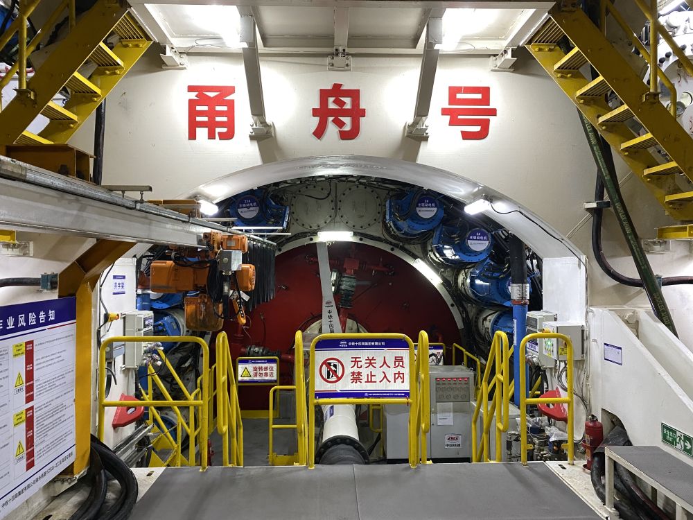 自2024年5月“甬舟號”盾構機始發(fā)以來,目前已掘進近2400米,深度位于海平面下約65米處。今年5月29日,工程迎來一個重要節(jié)點——盾構機由陸域段全面進入海域段施工。