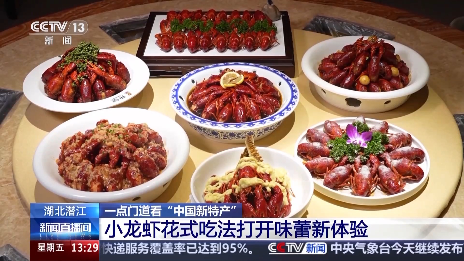 今天在演播室,我們也為大家?guī)砹藘傻罎摻↓埼r的新品,這道是“榴梿蝦”,大家可以看到,這是將軟爛的榴梿肉與龍蝦一起燒制,看著就非常入味,直播間里現(xiàn)在都飄著榴梿濃郁的味道。旁邊還有一款神秘口味的小龍蝦,看著平平無奇,但是據(jù)說非常獨(dú)特,可能會(huì)顛覆您對小龍蝦口味的印象,和咱們平時(shí)喝的某種飲品有關(guān),那究竟是什么味道呢?咱們先賣個(gè)關(guān)子,讓我們跟隨總臺(tái)記者的鏡頭,一起走進(jìn)潛江,看看那里的龍蝦盛宴。