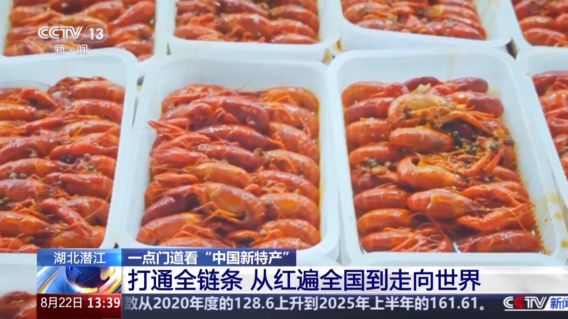 潛江市小龍蝦產(chǎn)業(yè)發(fā)展促進(jìn)中心主任 章云:截至目前,潛江小龍蝦的規(guī)模以上加工企業(yè)共有19家,生產(chǎn)出了60多種產(chǎn)品,組成了小龍蝦產(chǎn)品矩陣,建立了涵蓋餐飲、食品、醫(yī)療等多領(lǐng)域的全產(chǎn)業(yè)鏈體系。可以說,從田間到餐桌,從國內(nèi)到國際,潛江將這小小的一只蝦“吃干榨凈”,綜合(年)產(chǎn)值已經(jīng)突破了870億。