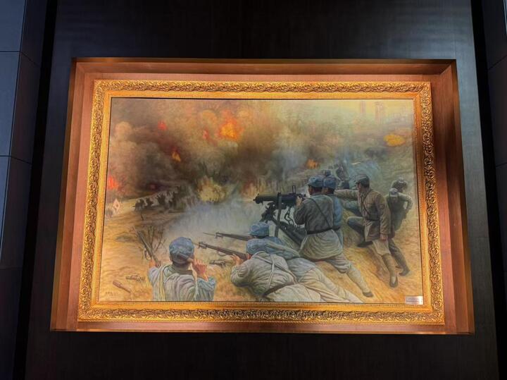 徐州運(yùn)河支隊抗日紀(jì)念館內(nèi)有一幅油畫,生動再現(xiàn)了夜襲賈汪的場景。