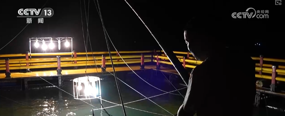 小管是東山海域特有的小魷魚,晝伏夜出對光線極為敏感,漁民們便循著這份習(xí)性,帶著游客開啟夜間捕撈。漁船行駛10分鐘后,抵達(dá)近海養(yǎng)殖區(qū)邊緣的捕撈點,漁民們開始架設(shè)誘光燈和網(wǎng)具。