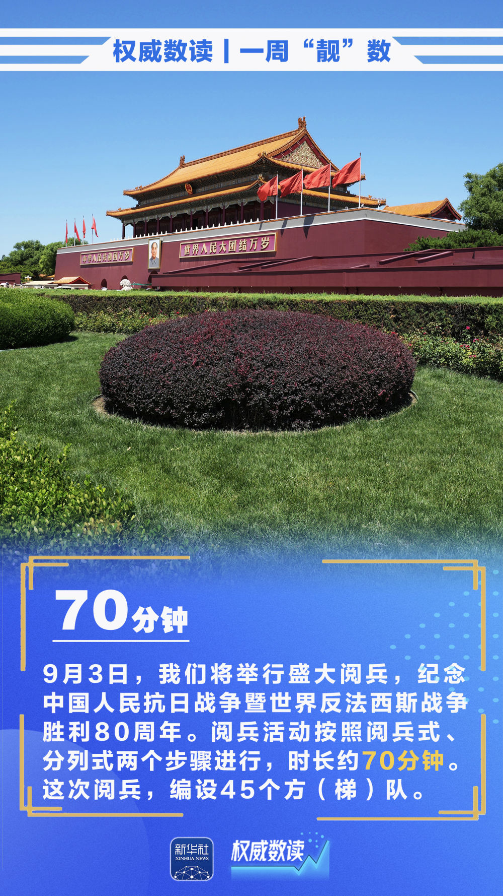 即將到來的九三閱兵活動(dòng)按照閱兵式、分列式兩個(gè)步驟進(jìn)行,時(shí)長(zhǎng)約70分鐘;我國(guó)外貿(mào)保持穩(wěn)中有進(jìn)態(tài)勢(shì),累計(jì)進(jìn)出口增速逐月回升,前7個(gè)月實(shí)現(xiàn)3.5%的增長(zhǎng);今年前7個(gè)月,我國(guó)對(duì)上海合作組織其他成員國(guó)進(jìn)出口2.11萬億元,規(guī)模創(chuàng)歷史同期新高……本周這些數(shù)據(jù),最值得關(guān)注!