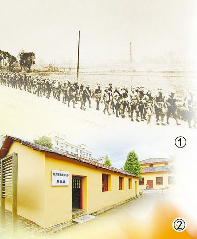 圖①:長沙臨時(shí)大學(xué)部分師生步行前往昆明。