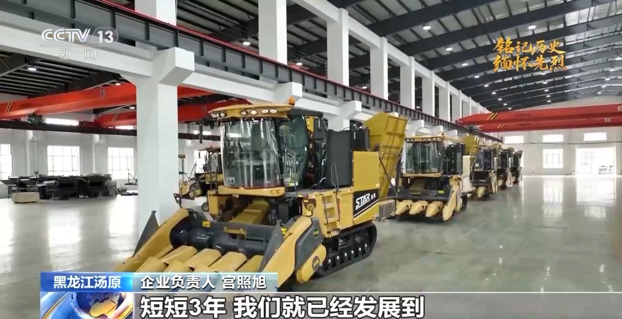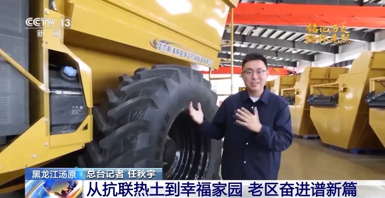總臺記者 任秋宇:我的身高是185cm,我身邊的輪胎幾乎和我一樣高,這臺機械是湯原縣一家機械制造企業(yè)自主研發(fā)的大型鮮食玉米收割機。以往鮮食玉米的收割,主要依靠人工和小型的機械,像這么大的收割機,因為技術“卡脖子”的原因只能依賴進口。而這家企業(yè)通過自主研發(fā),解決了技術上的難題,這臺機械正在試驗階段,明年就能上市了。