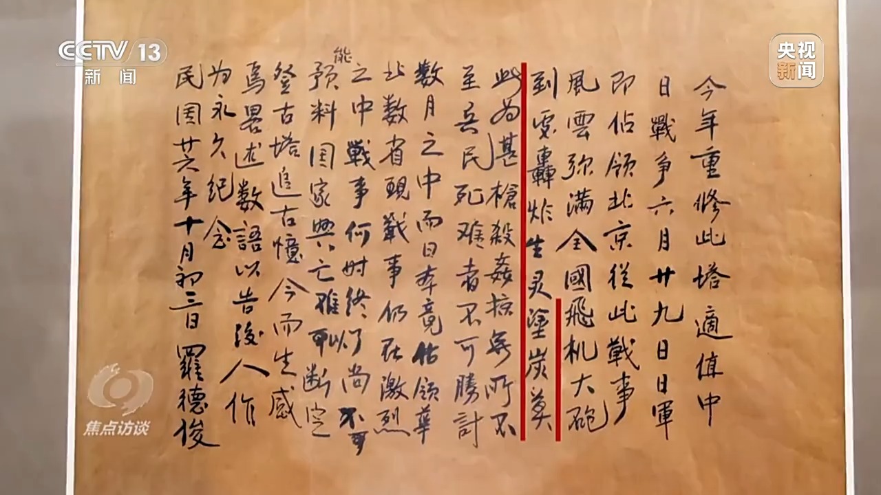 今年是中國(guó)人民抗日戰(zhàn)爭(zhēng)暨世界反法西斯戰(zhàn)爭(zhēng)勝利80周年。在這場(chǎng)決定人類命運(yùn)的偉大斗爭(zhēng)中,中國(guó)作為東方主戰(zhàn)場(chǎng),以3500萬(wàn)同胞傷亡的沉重代價(jià),為世界反法西斯事業(yè)作出了不可磨滅的歷史貢獻(xiàn)。為銘記這段用鮮血和生命鑄就的壯麗史詩(shī),《焦點(diǎn)訪談》推出特別節(jié)目“歷史照耀今天”。今天,我們首先重返1931年九一八事變的歷史現(xiàn)場(chǎng),揭開(kāi)中國(guó)人民14年不屈抗戰(zhàn)的序幕。