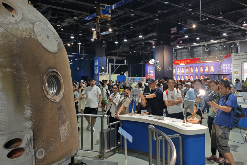 暑期的中國科技館人頭攢動,“神舟一號”返回艙實(shí)物吸引游客圍觀。(中國科技館供圖)