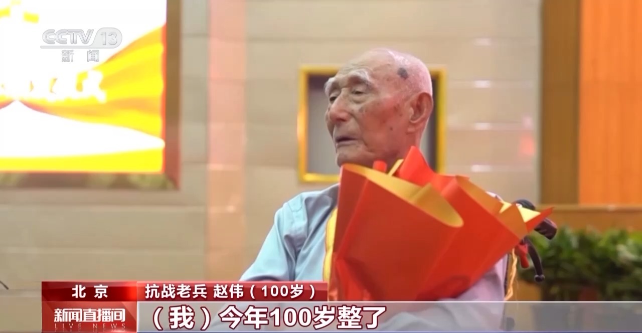 抗戰(zhàn)老兵 趙偉(100歲):我今年100歲了,8月15日就是100歲,國家又給我一個生日禮物。