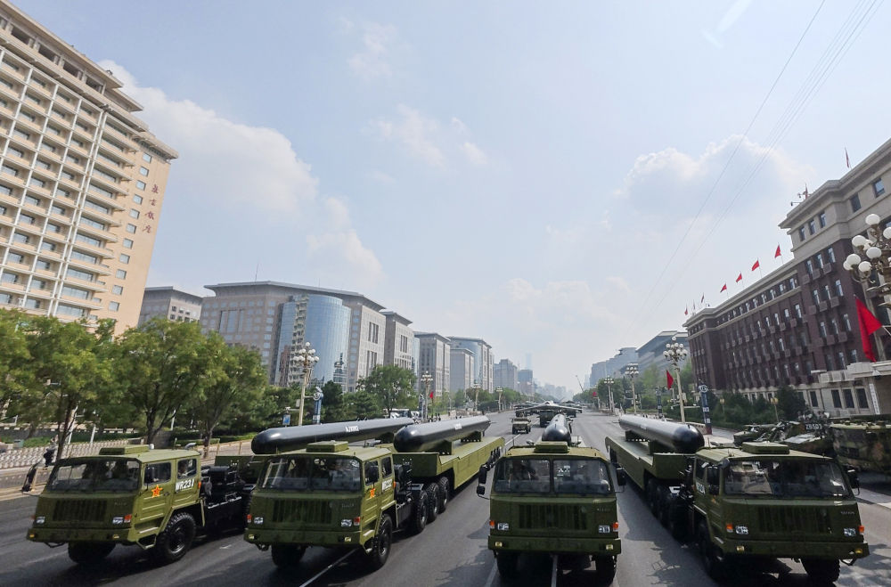 ↑這是殲擊機(jī)梯隊(duì)從北京城區(qū)上空飛過。