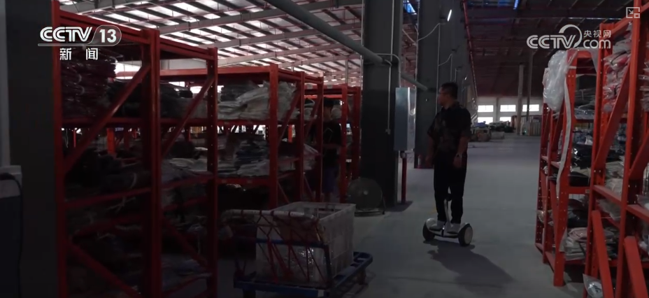 當(dāng)記者在天門(mén)服裝產(chǎn)業(yè)園里碰到費(fèi)文的時(shí)候,他正騎著電動(dòng)平衡車(chē)在庫(kù)房的貨架之間來(lái)回穿梭。