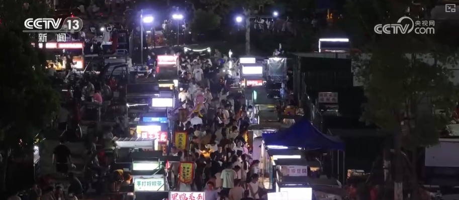 每天,當(dāng)夜幕降臨,天門(mén)北湖夜市就會(huì)準(zhǔn)時(shí)“開(kāi)攤”,300多個(gè)攤位依次亮起霓虹招牌,香氣繚繞,叫賣(mài)聲此起彼伏。記者行走其中,發(fā)現(xiàn)一個(gè)比夜市更引人注目的一個(gè)現(xiàn)象,就是穿梭其中的年輕父母格外多,還有不少二孩甚至是三孩家庭。
