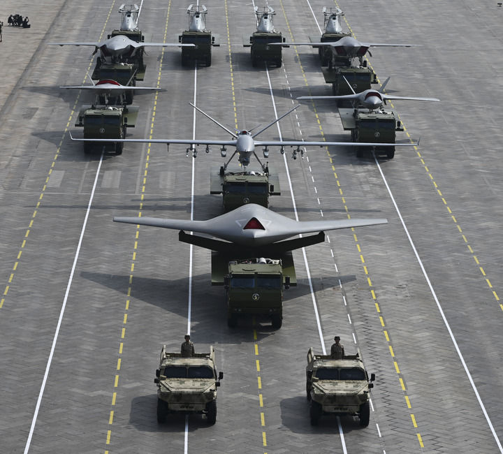 ↑9月3日,紀(jì)念中國(guó)人民抗日戰(zhàn)爭(zhēng)暨世界反法西斯戰(zhàn)爭(zhēng)勝利80周年大會(huì)在北京隆重舉行。這是空中無人作戰(zhàn)方隊(duì)接受檢閱。