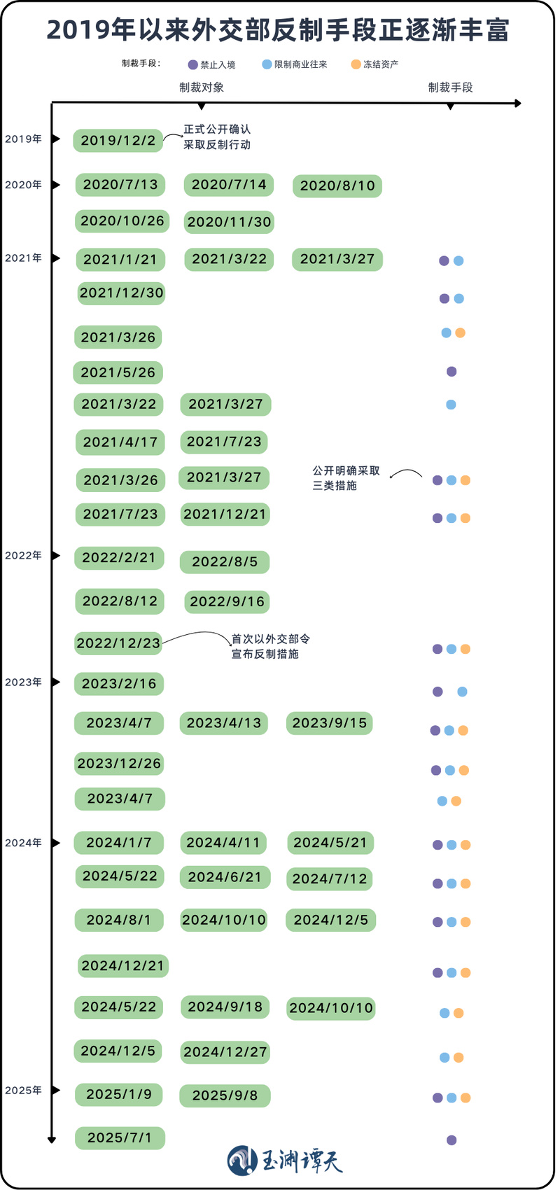 當(dāng)時(shí),外交部開(kāi)始通過(guò)發(fā)言人表態(tài)宣布制裁,正式公開(kāi)確認(rèn)采取反制行動(dòng)。2019到2020年基本如此。