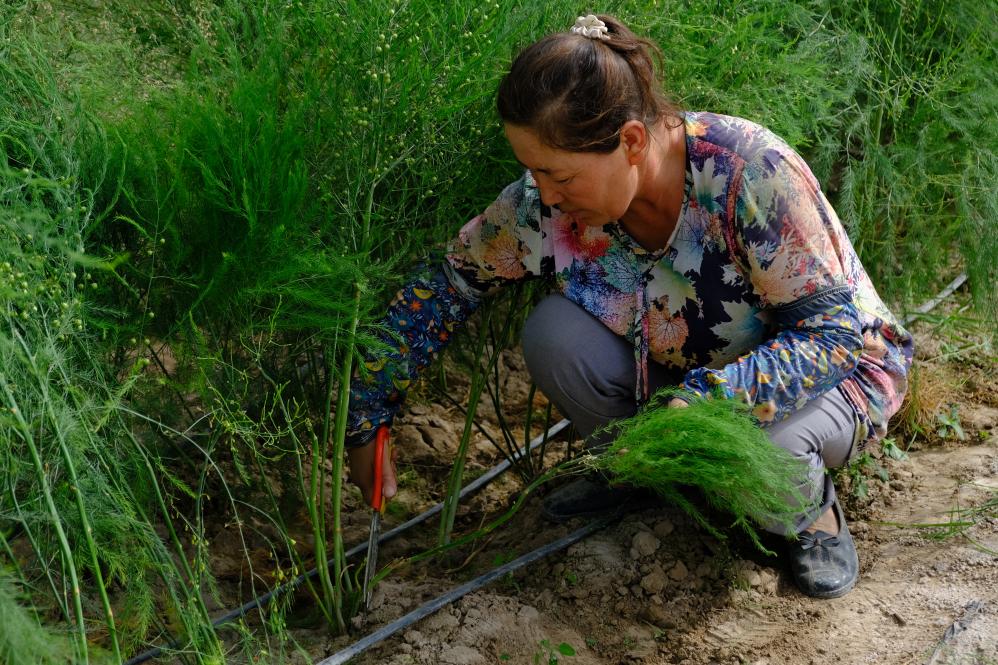 “后來我把蘆筍和羊肉一起炒,又嫩又香,全家都搶著吃?!彼χf。這種陌生的蔬菜,正悄然成為她與村莊在鄉(xiāng)村振興路上的嶄新起點。