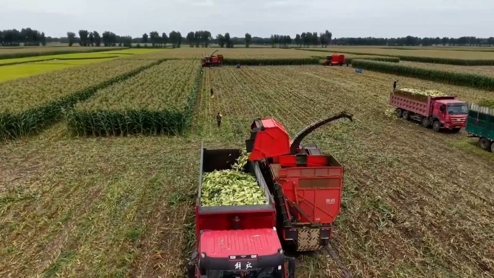 新疆巴音郭楞蒙古自治州焉耆縣的1.5萬畝青貯玉米迎來豐收。在永寧鎮(zhèn)九號渠村,大型青貯收割加工機將一株株玉米從根部割斷,粉碎后拋入集草車。