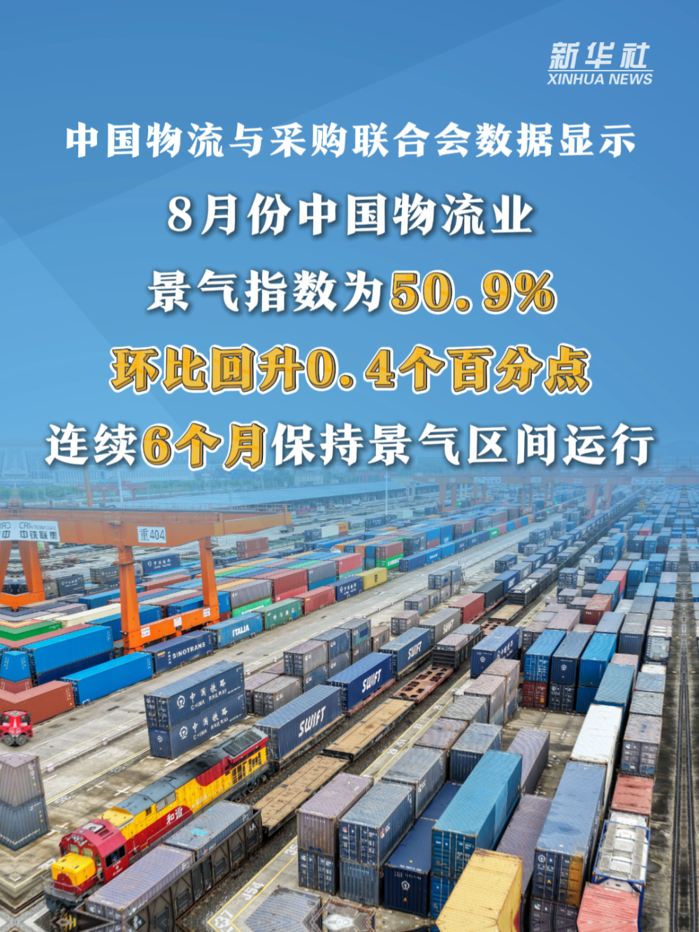 近期,中國國家鐵路集團有限公司、中國物流與采購聯(lián)合會、國家郵政局等發(fā)布多項數(shù)據(jù)。數(shù)據(jù)顯示,今年前8個月,全國鐵路發(fā)送旅客創(chuàng)歷史同期新高,物流業(yè)景氣指數(shù)連續(xù)6個月保持景氣區(qū)間運行,郵政行業(yè)寄遞業(yè)務(wù)量同比增長15.5%……多項數(shù)據(jù)折射出我國“人享其行、物暢其流”的經(jīng)濟活力。