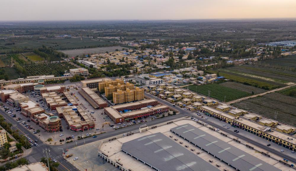 這是9月18日拍攝的新疆巴音郭楞蒙古自治州尉犁縣達西村(無人機照片)。