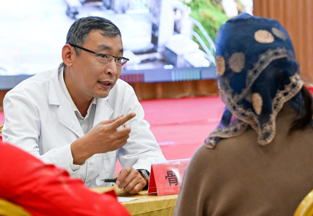 9月19日,鐵門關(guān)市人民醫(yī)院醫(yī)生在達西村為村民義診。