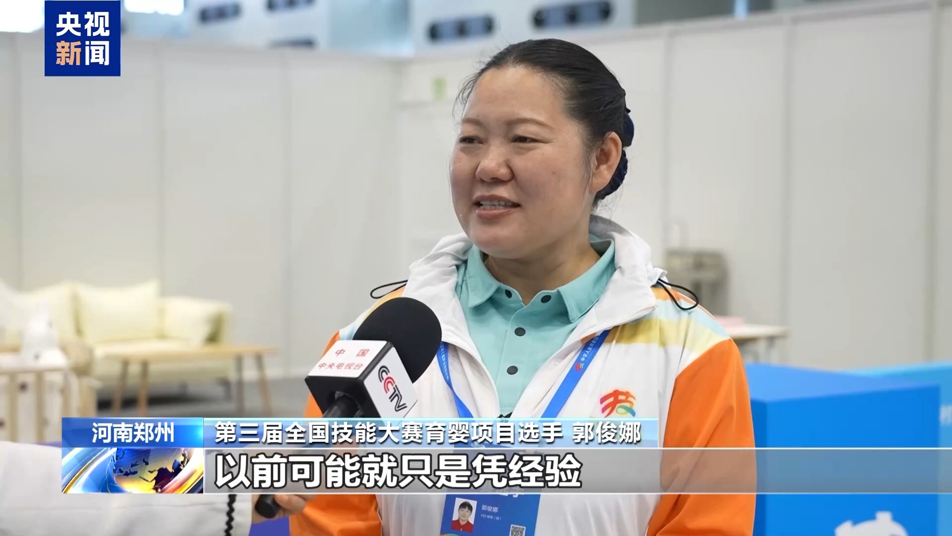 第三屆全國技能大賽育嬰項目選手 郭俊娜:比如給寶寶喂奶,以前可能只是憑經(jīng)驗,現(xiàn)在就要求抱孩子45度斜角。把流程標(biāo)準(zhǔn)化了,能夠更好地服務(wù)嬰幼兒以及家庭。