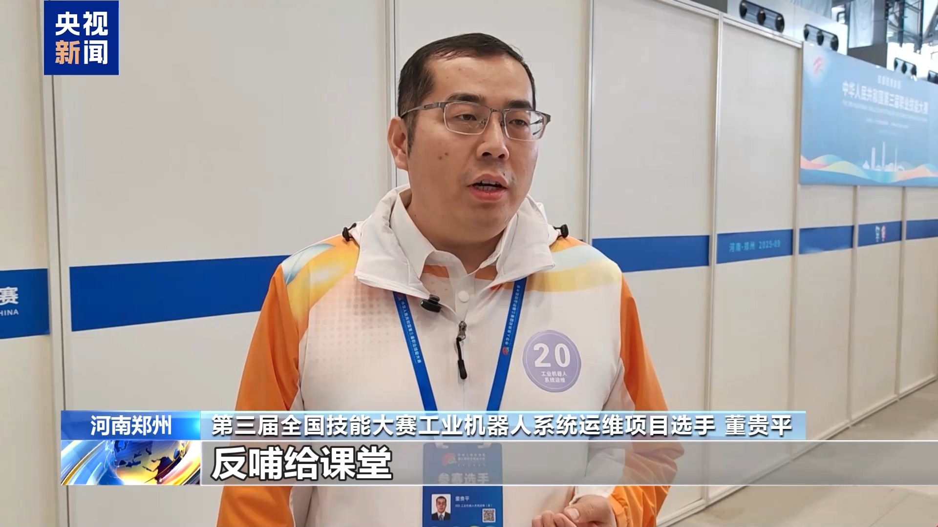 第三屆全國技能大賽工業(yè)機(jī)器人系統(tǒng)運(yùn)維項目選手 董貴平:能夠把學(xué)到的一些實操技能以及理論知識,反哺給課堂,提升學(xué)生的理論儲備以及實操的技能。