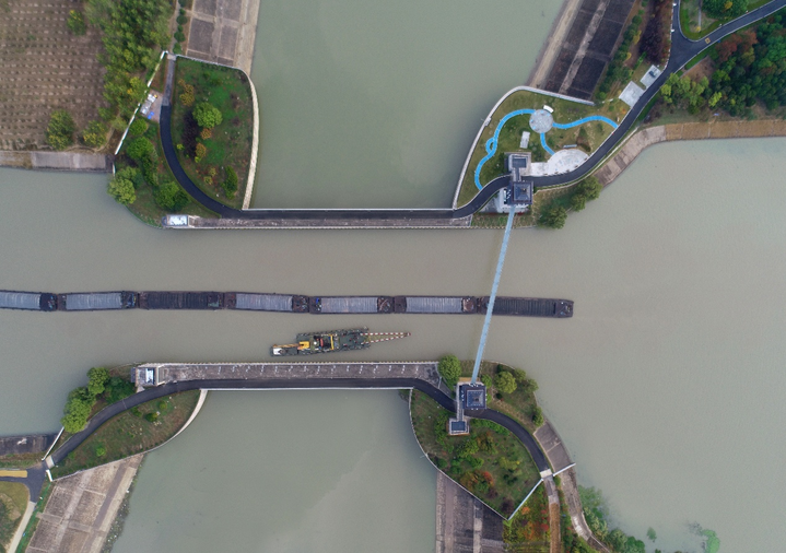 作為淮河入海水道二期工程的核心節(jié)點,淮安水利樞紐大運河水上立交建成便是“亞洲最大水立交”。京杭大運河、蘇北灌溉總渠、淮河入海水道,三條載入史冊的人工水道在此交匯,“兩橫一縱”的格局間,藏著建設(shè)者們最棘手的難題?!岸诠こ桃o鄰布置,水系又密、水頭還高?!蓖鹾橛裉直葎澲鴺屑~布局,“我們先做好基坑防滲工作,再通過開挖臨時導(dǎo)航明渠來保障運河航運,工程在緊鑼密鼓地推進?!?/p>