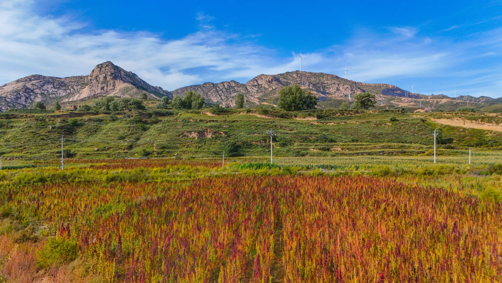可觀的效益,極大地調(diào)動(dòng)了農(nóng)民的種植積極性。靜樂(lè)縣的藜麥種植面積從2013年的1萬(wàn)畝,迅速擴(kuò)展到如今的5萬(wàn)畝。目前,全縣已擁有藜麥綠色標(biāo)準(zhǔn)化種植示范基地3.2萬(wàn)畝,平均畝產(chǎn)在150公斤以上。這條產(chǎn)業(yè)鏈串聯(lián)起60余家合作社、2500余戶農(nóng)戶,其中800多戶是脫貧戶和監(jiān)測(cè)戶。一顆顆小小的藜麥,真正成了帶動(dòng)一方百姓增收的“致富作物”。