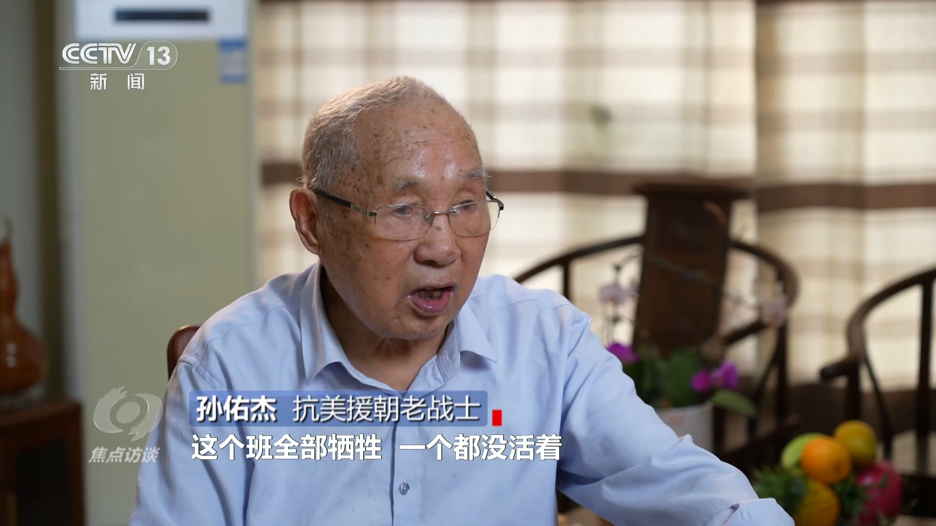 抗美援朝老戰(zhàn)士孫佑杰:“一班班長領(lǐng)著大家討論吃苦的價值,班長說我們今天在這里吃苦,流血犧牲是有價值的,等我們打敗了美帝國主義的侵略以后,我們的祖國強大了,人們的生活會更加美好,到那時候就會樓上樓下電燈電話,想吃面包就吃面包,想喝牛奶就喝牛奶,天天像過年一樣?!?/p>