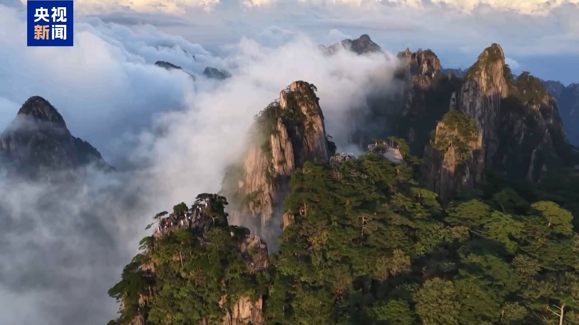 黃山素有“中國第一奇山”之譽,以“奇松、怪石、云海、溫泉、冬雪”這五絕著稱。山間云海在霞光的照射下變幻著色彩和姿態(tài),緩緩流動,勾勒出千峰萬壑的輪廓。
