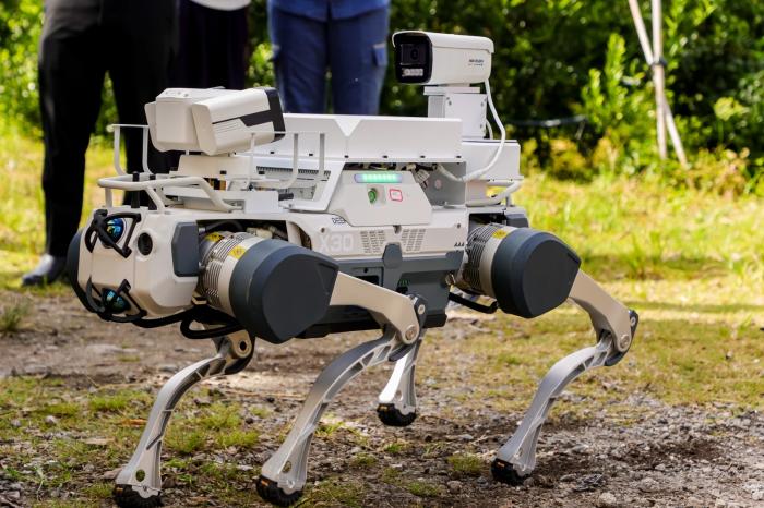 從“地面?zhèn)刹毂睓C(jī)械狗,到“無形劍客”激光清障儀,各種新技術(shù)齊登場。一方面,機(jī)械狗以其靈活性而著稱,可爬坡、越障,代替?zhèn)鹘y(tǒng)巡檢人員實(shí)現(xiàn)園區(qū)全角落全覆蓋,并將錄制的高清視頻實(shí)時(shí)傳回后臺,為工作人員提供技術(shù)分析數(shù)據(jù)支撐;另一方面,激光清障儀可利用其高度集中的光能,隔空切斷樹枝,確保在不停電、不爬高的前提下,安全清理威脅園區(qū)電網(wǎng)安全的樹障。