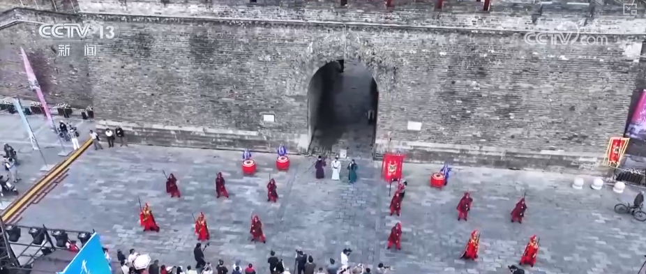 國(guó)慶長(zhǎng)假期間,湖北荊州精心打造多場(chǎng)實(shí)景劇,從“桃園結(jié)義”到“屈子荊歌”,為游客帶來(lái)沉浸式體驗(yàn)。在荊州古城大北門,《三國(guó)英雄路》入城儀式震撼上演,數(shù)十名身著精良甲胄的士兵,手持長(zhǎng)戟列陣城門,伴隨戰(zhàn)鼓雷鳴與旌旗翻飛,帶領(lǐng)游客瞬間穿越至1800年前的金戈鐵馬時(shí)代。實(shí)景演藝,讓靜態(tài)三國(guó)故事、歷史文化,通過(guò)動(dòng)態(tài)演繹“活”起來(lái)。