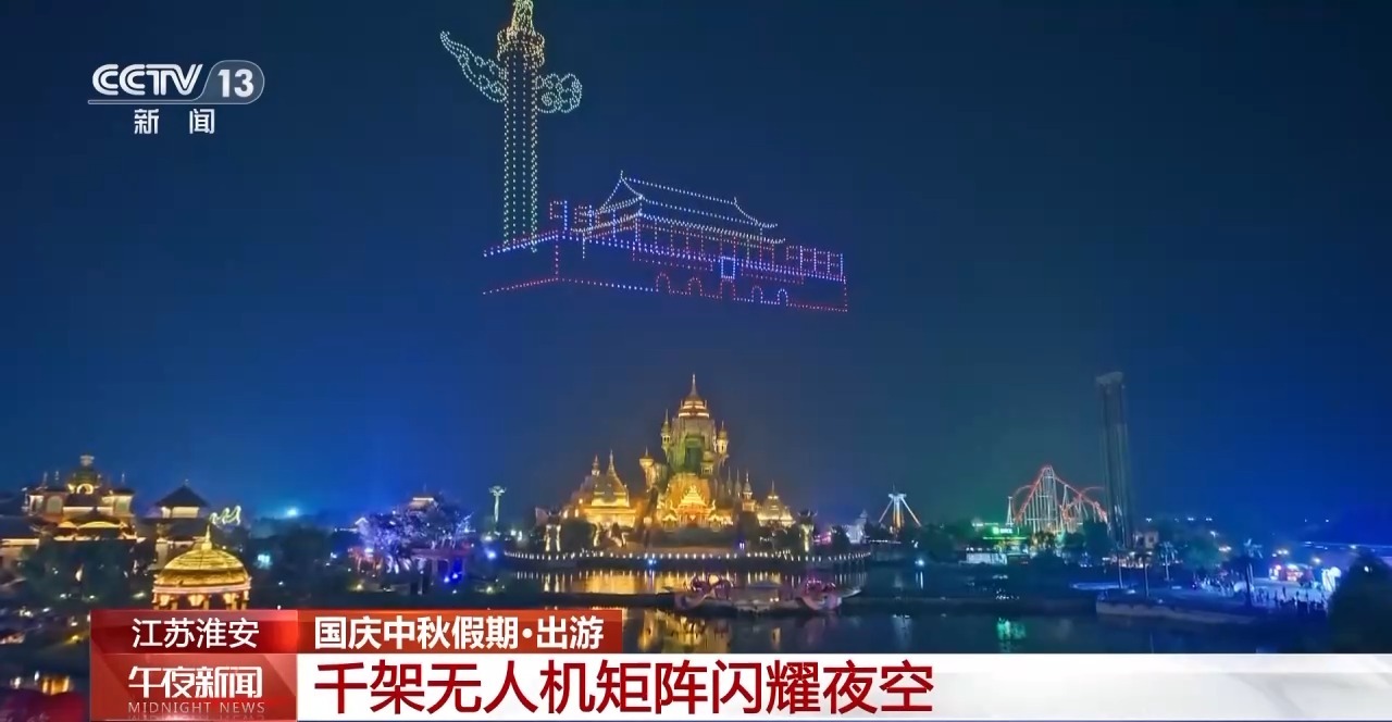 夜幕降臨,在江蘇淮安西游樂(lè)園,1600架無(wú)人機(jī)同步升空,組成“我愛你中國(guó)”、天安門、璀璨中國(guó)等造型圖案,科技與光影的碰撞,譜寫了一曲璀璨奪目的 “空中詩(shī)篇”。全新升級(jí)的“國(guó)慶煙花大會(huì)”更是將現(xiàn)場(chǎng)氛圍推向高潮。絢爛的煙花與水幕交織相映,形成了一幅立體畫卷,營(yíng)造出了既浪漫又熱烈的節(jié)日氛圍。