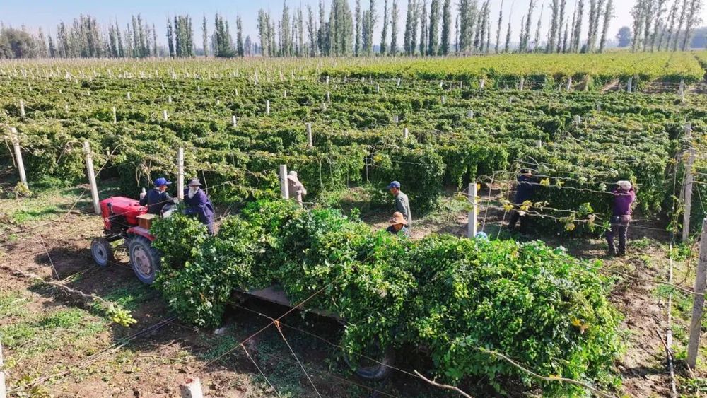 142團種植的6000畝啤酒花喜獲豐收 (陸永紅 攝)