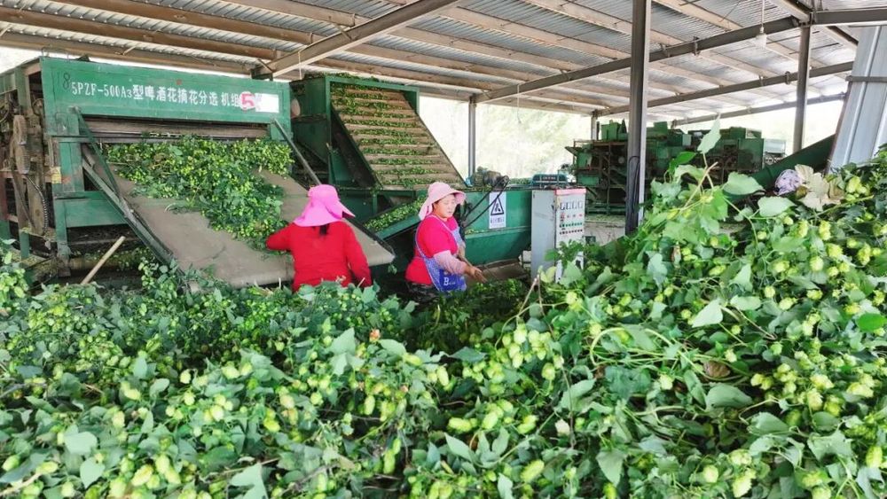 金秋時節(jié),新疆生產(chǎn)建設(shè)兵團第八師石河子市142團種植的6000畝啤酒花喜獲豐收,鮮花畝產(chǎn)量近1000公斤,烘干后干花達250公斤,每畝純收益約1500元。