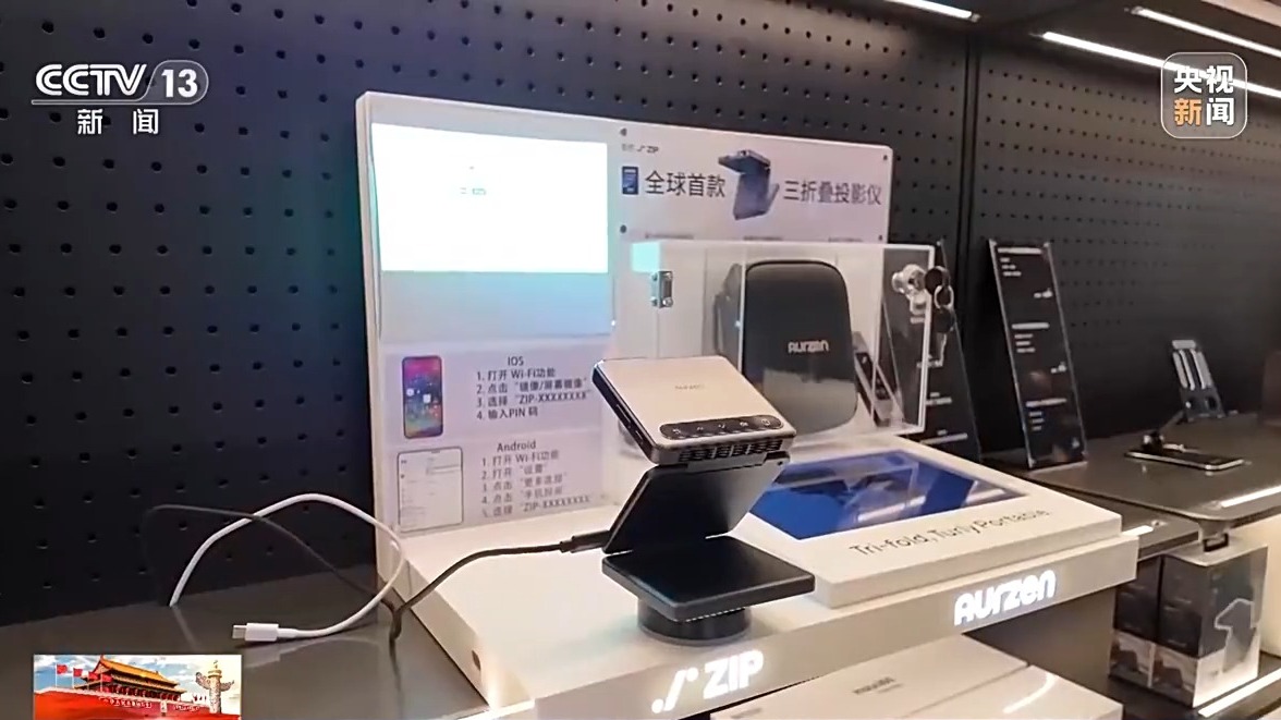 像這家店內(nèi)展示的三折疊投影儀、無弦吉他、教育機器人等多門類新品,覆蓋了工作、生活、娛樂等全場景。記者發(fā)現(xiàn),店內(nèi)推出的大量AI新品,不僅功能更強大,操作起來也更加簡單,讓老百姓能夠更方便地使用人工智能技術(shù)。