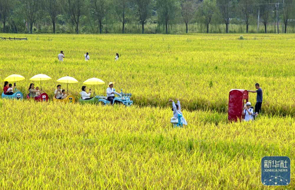 ↑ 10月5日,游客在湖北省恩施市白果鄉(xiāng)“塘里堂外”農(nóng)文旅田園綜合體游覽。新華社發(fā)(譚華攝)