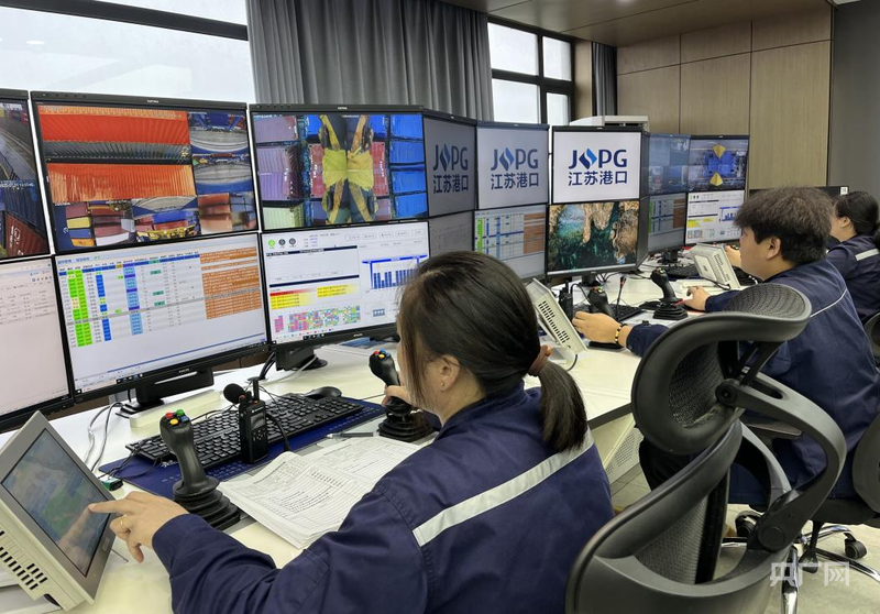 南京港龍?zhí)都b箱有限公司總經(jīng)理段昌尉介紹,“工作人員在幾公里外的辦公大樓里利用‘智慧大腦’遠程操作。龍?zhí)陡蹍^(qū)平均每天有40余艘集裝箱船??浚詮挠辛恕腔鄞竽X’,一個工作人員就能同時操作4到5臺軌道吊,效率實現(xiàn)倍增。”