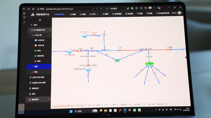 在河海大學(xué)水工程調(diào)度團(tuán)隊(duì)鐘平安教授的帶領(lǐng)下,朱非林參與了面向三峽工程這一國之重器的重大科研攻關(guān)。團(tuán)隊(duì)主要在"快"和"準(zhǔn)"兩個(gè)字上下功夫。過去,為一個(gè)流域搭建防汛調(diào)度模型和系統(tǒng),需要工程師花費(fèi)幾天甚至幾個(gè)月手動(dòng)創(chuàng)建,如同手工編織一張巨大的網(wǎng)。朱非林團(tuán)隊(duì)開發(fā)了一套智能在線建模系統(tǒng),像搭"數(shù)字樂高"一樣,通過簡單的鼠標(biāo)拖拉拽操作,就能在幾分鐘內(nèi)建立起全國任意流域或區(qū)域的調(diào)度系統(tǒng)和模型,極大提升了防汛決策的響應(yīng)速度,為洪水調(diào)度贏得了寶貴的黃金時(shí)間。