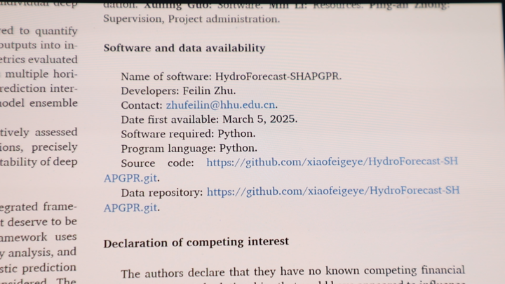 朱非林在學(xué)術(shù)研究中有一個(gè)特別的堅(jiān)持——公開分享自己的代碼。早在2017年,他就將防洪決策的模型代碼公開,美國、印度及國內(nèi)的學(xué)者紛紛與他聯(lián)系,在他開發(fā)的模型基礎(chǔ)上進(jìn)行深化研究,推動(dòng)了整個(gè)方向的發(fā)展。"水利行業(yè)是造福人民的事業(yè),不應(yīng)該有圍墻。"朱非林的想法很簡單,一項(xiàng)技術(shù)只有被更多人使用、檢驗(yàn)和完善,才能發(fā)揮更大價(jià)值,更快推動(dòng)整個(gè)行業(yè)進(jìn)步。個(gè)人的工作如果能給其他研究者或工程單位帶來啟發(fā)和幫助,其意義就遠(yuǎn)超一篇論文本身。